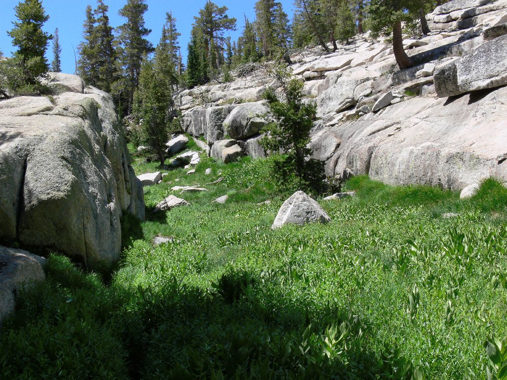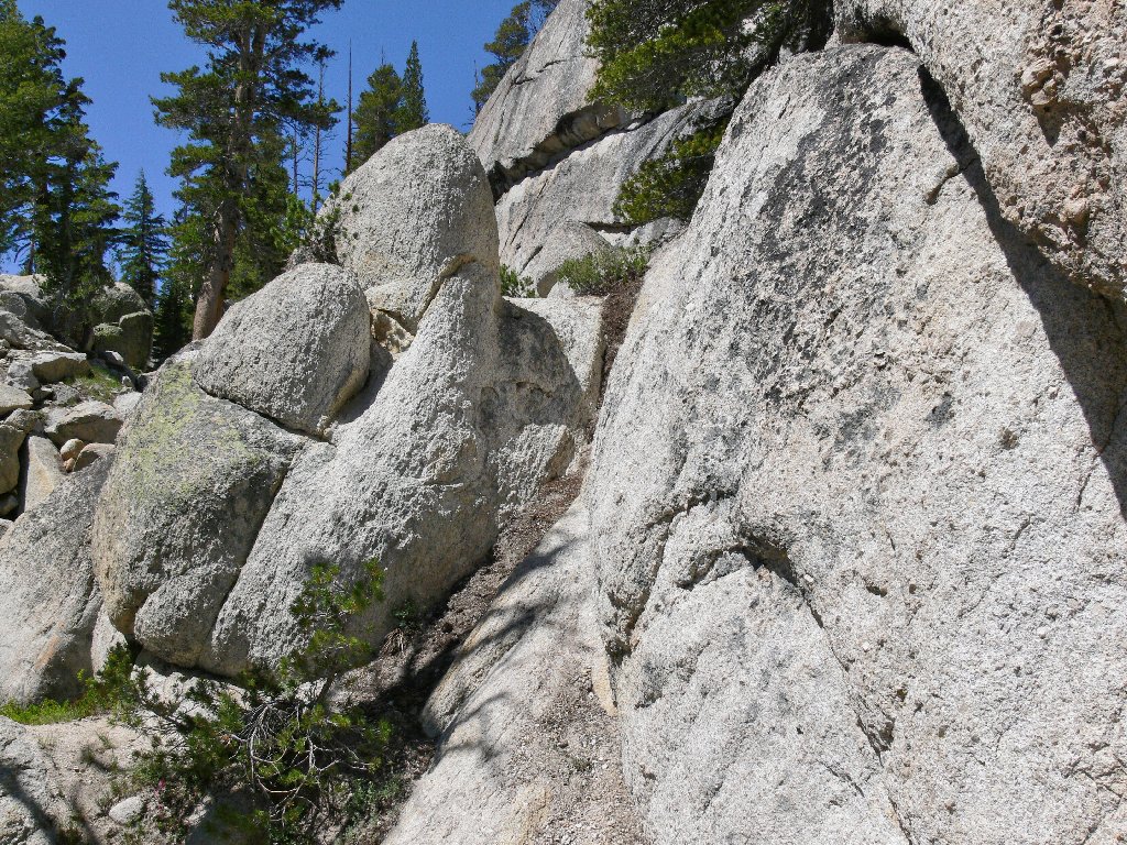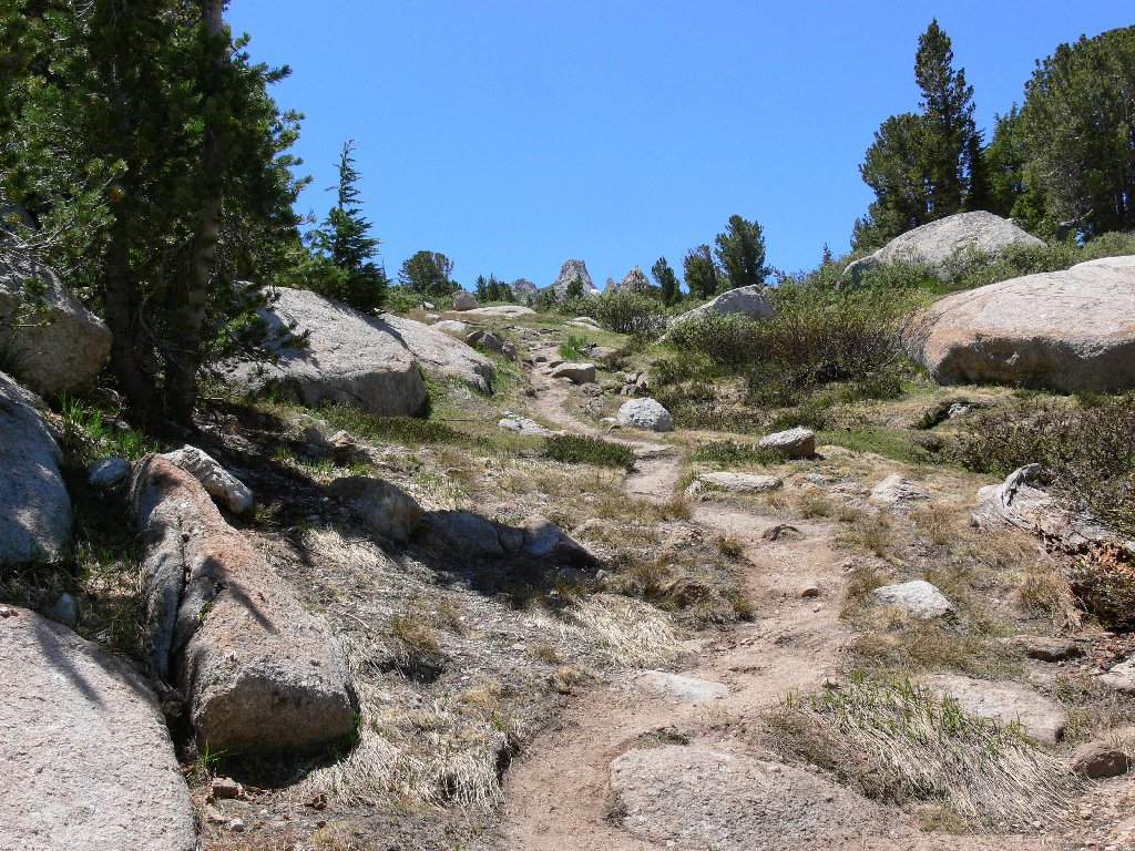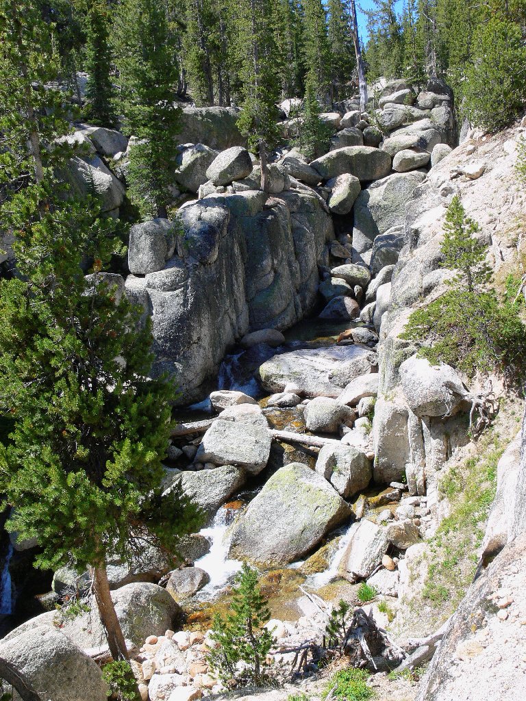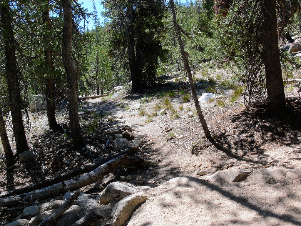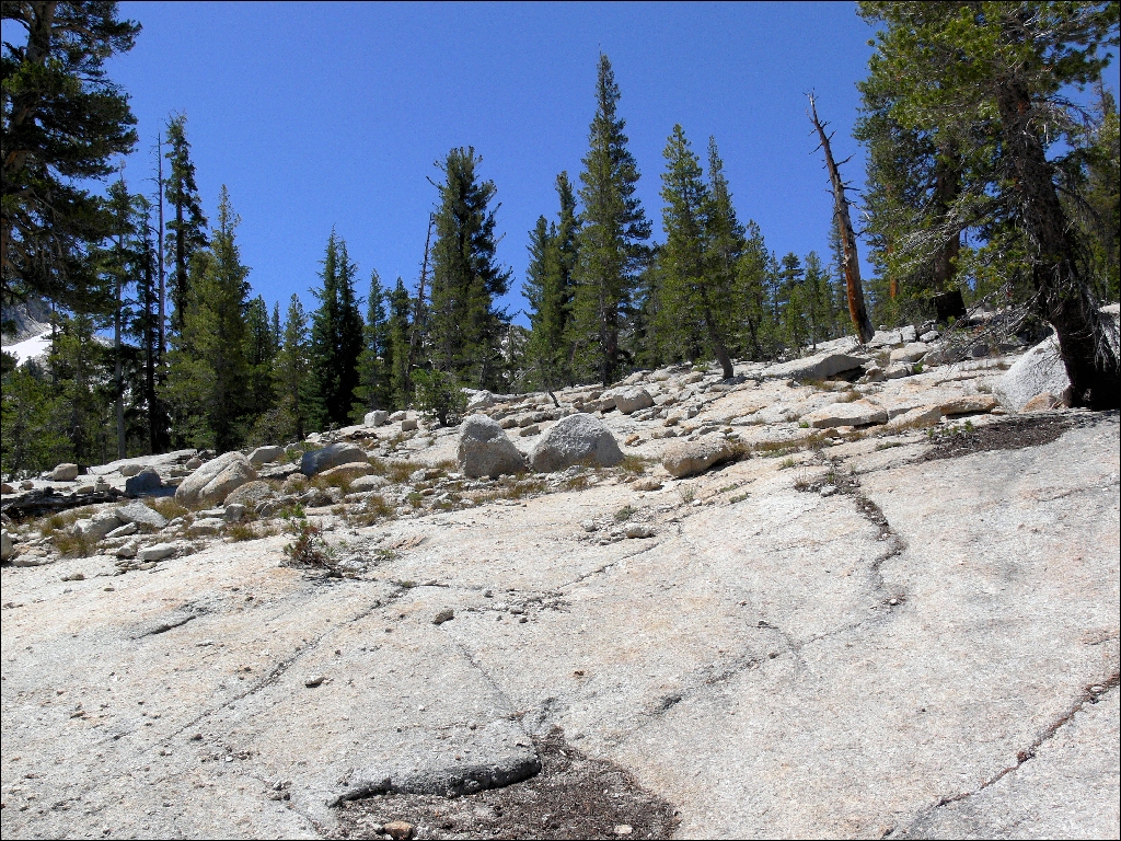 I manage to save about a quarter-mile of travel by bushwhacking northeast toward the JMT. This ploy might not be saving any time, but I didn't like that other section of trail.