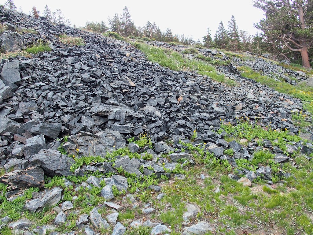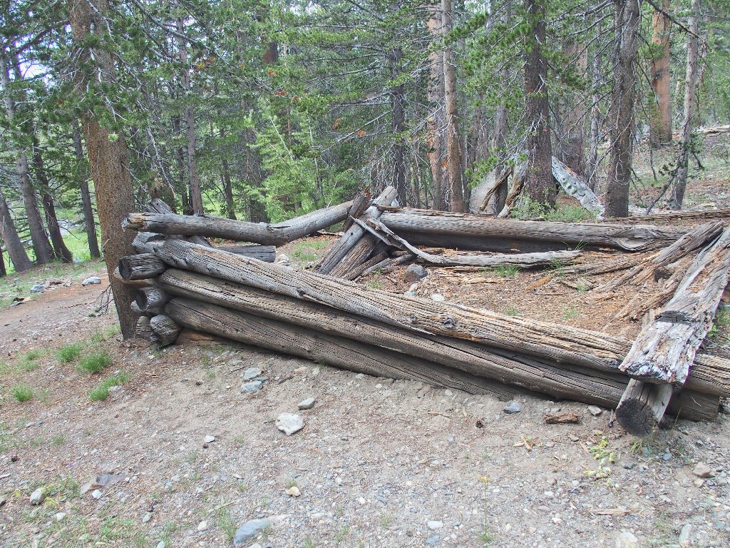 An unmarked trail leads southward an old mining site. As soon as I turn onto it, a hiker couple approaches, informing me that I will have the cabins to myself.