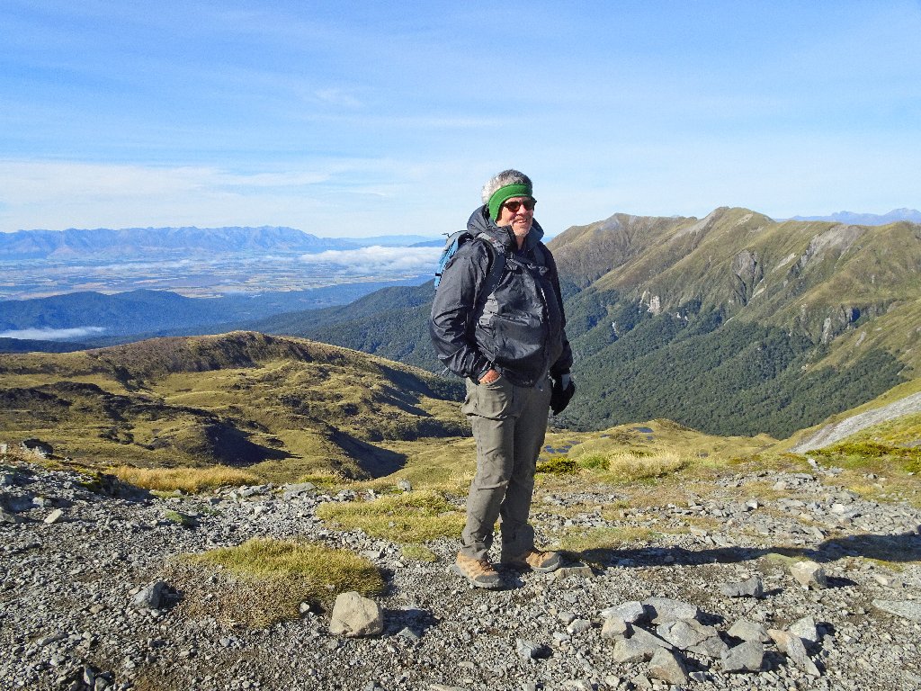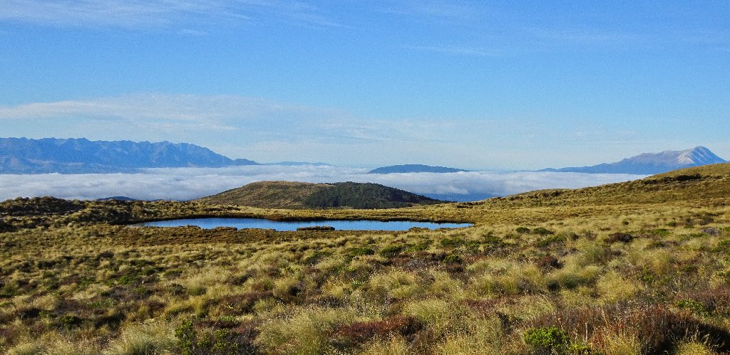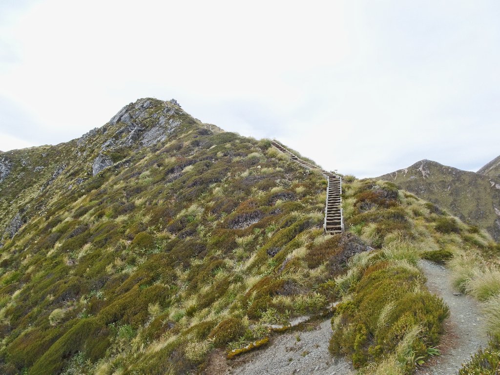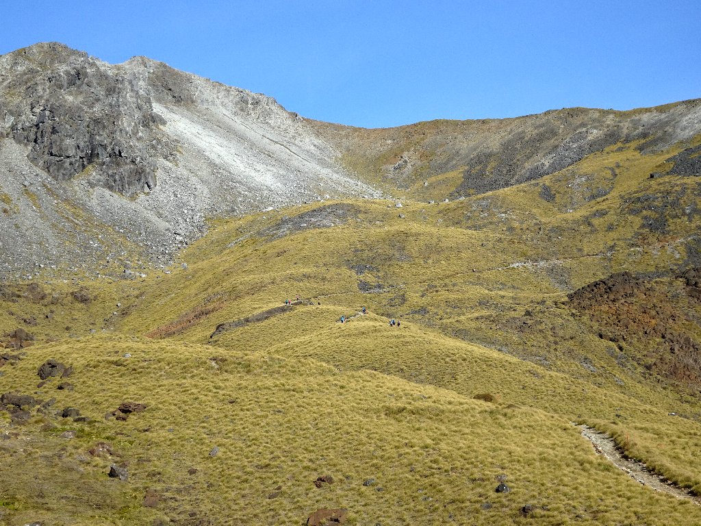 Dave and I elect to eschew the detour up to the mountain summit. It doesn't look as if the view would improve much, and the trail looks crappy, and it's a bit windy and cold already.