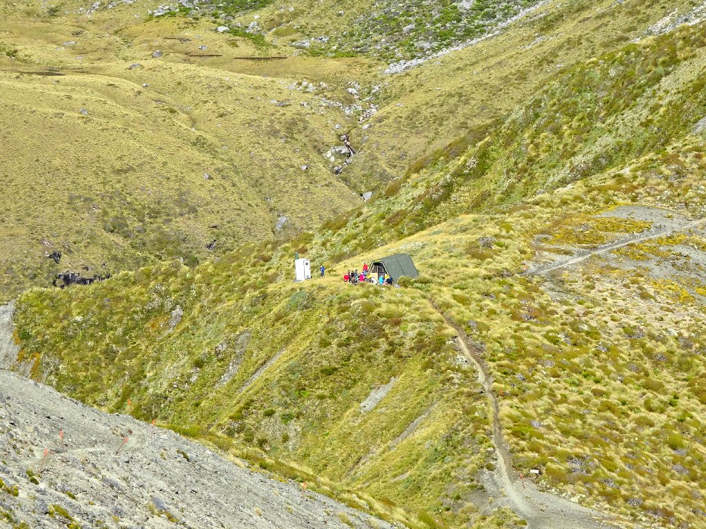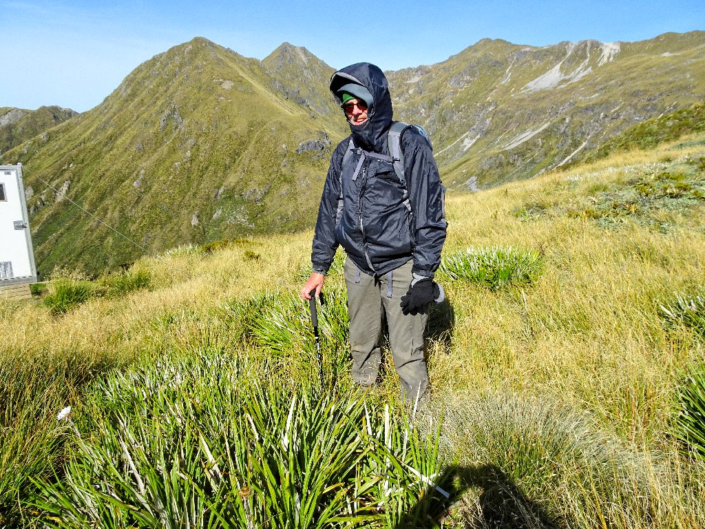 The Iris Burn Hut does show up eventually, of course. At this one we must leave our boots and any heavy rain gear outside. That is something of a problem, because there are so many sand flies present that the time spent outside in taking off a boot is hazardous to one's health.