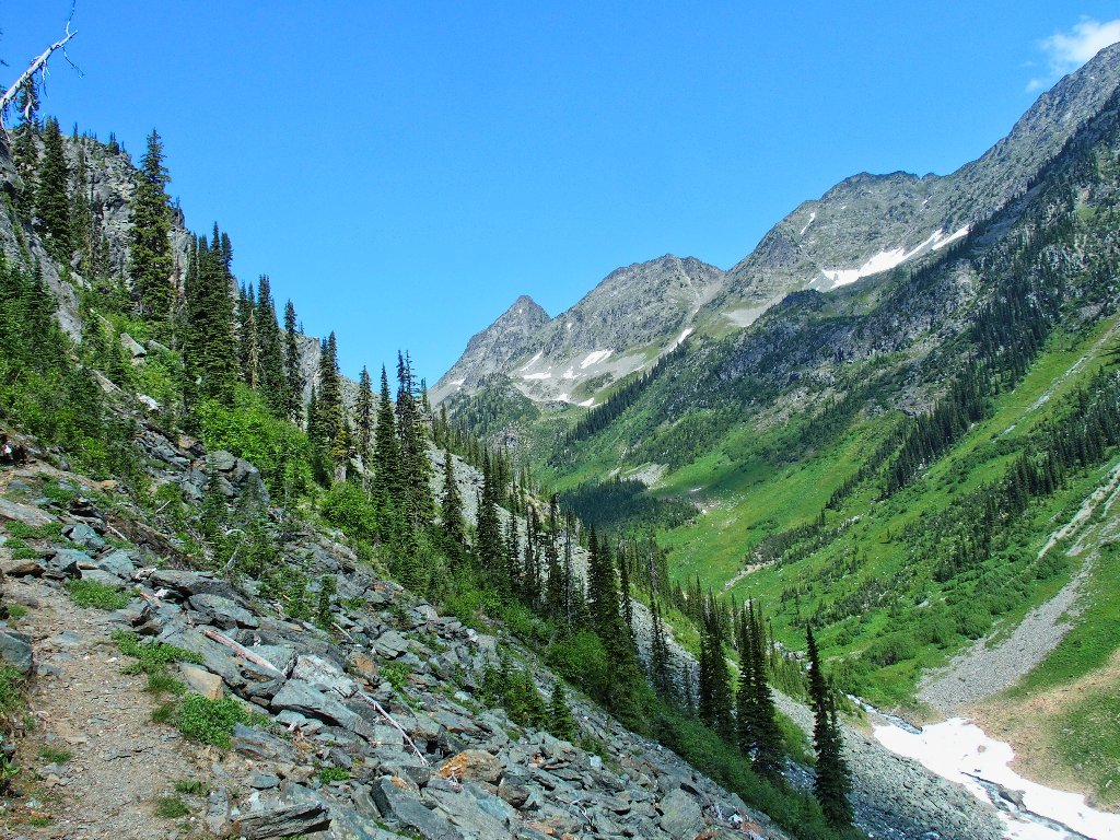 Doubtless there is more good stuff around the corner; but the trail clearly isn't going to improve, and the views won't change much for quite a while. There are lakes and other spectacular stuff ahead, but they are well beyond my mileage range. I have seen enough of this area to satisfy me.