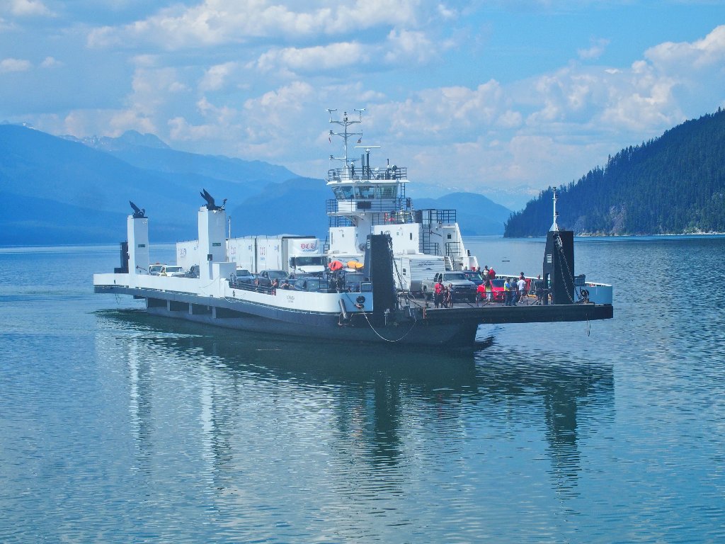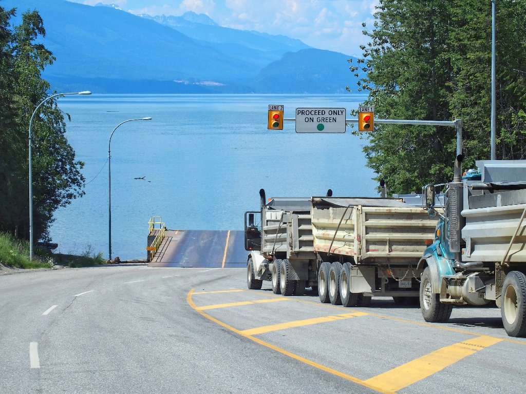Tonight's lodging is in Revelstoke, and the only way to get up there is to ferry across the lengthy Upper Arrow Lake on the Columbia River.