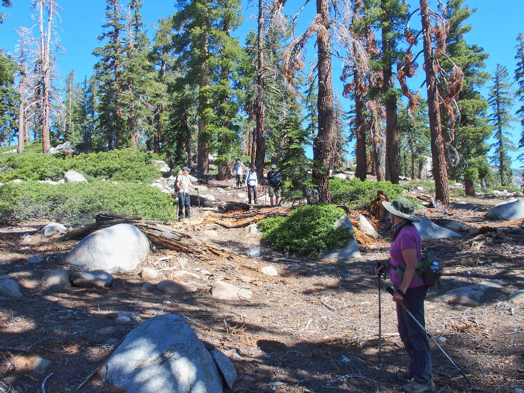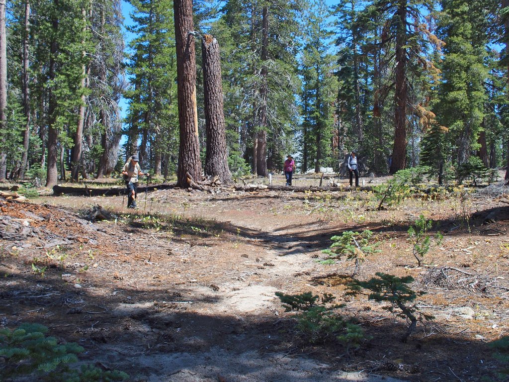After the long, crooked traverse, a steep drop through some manazanita is unavoidable; but no one complains.
