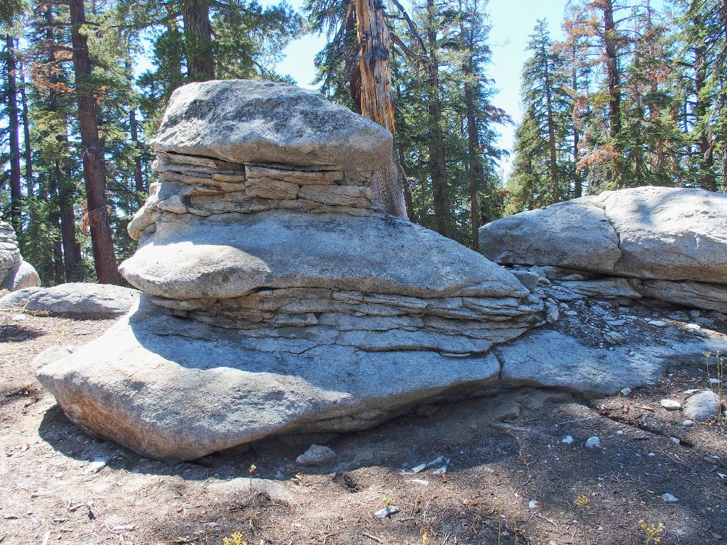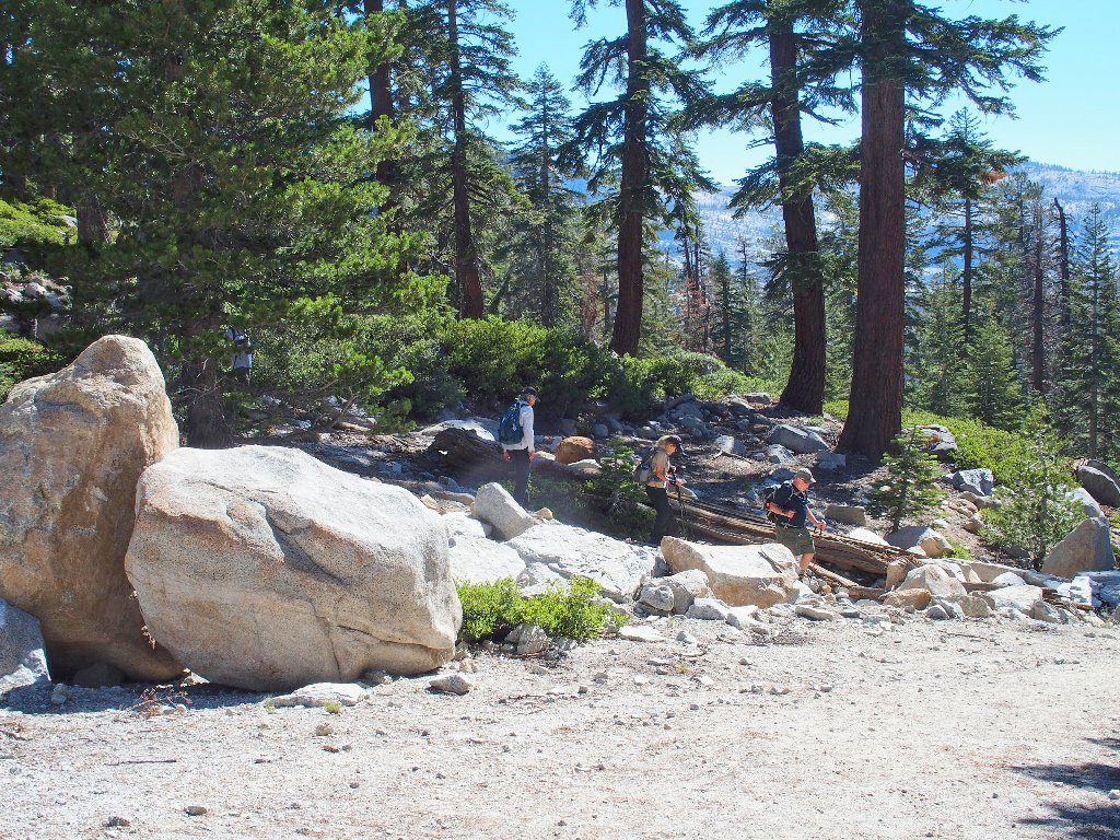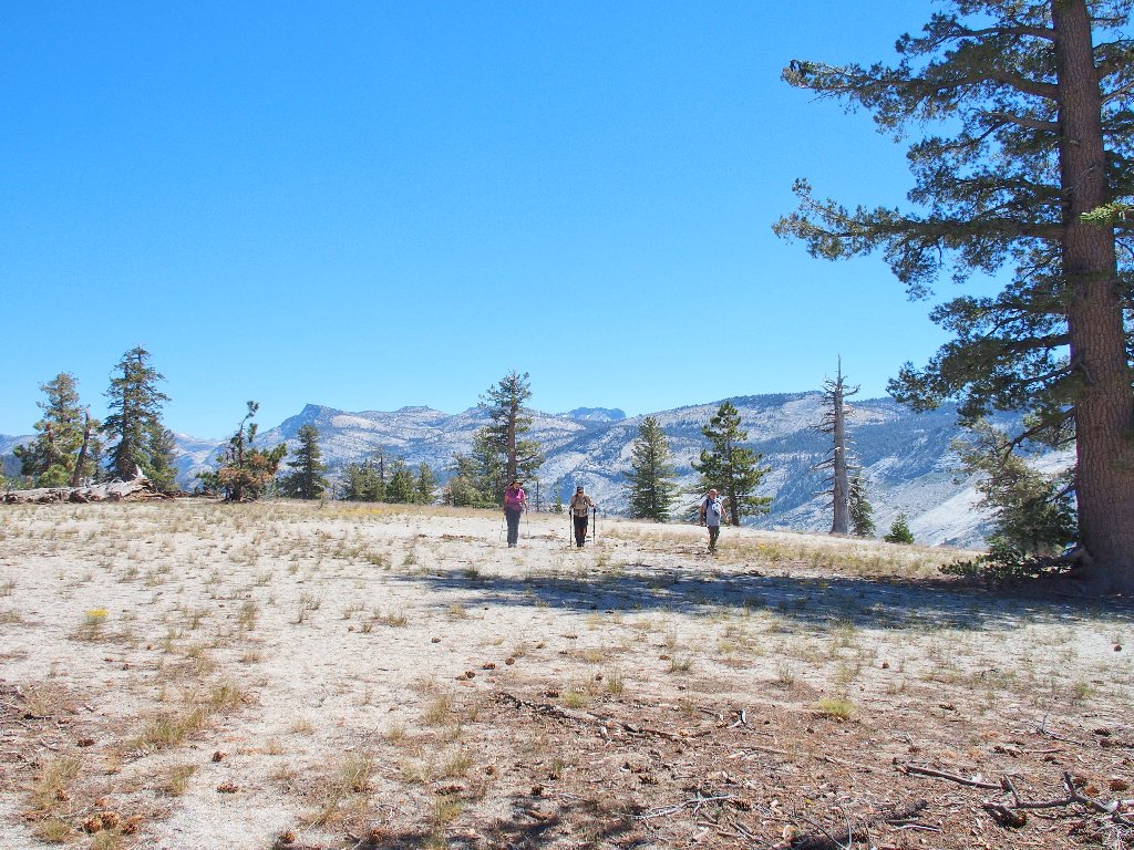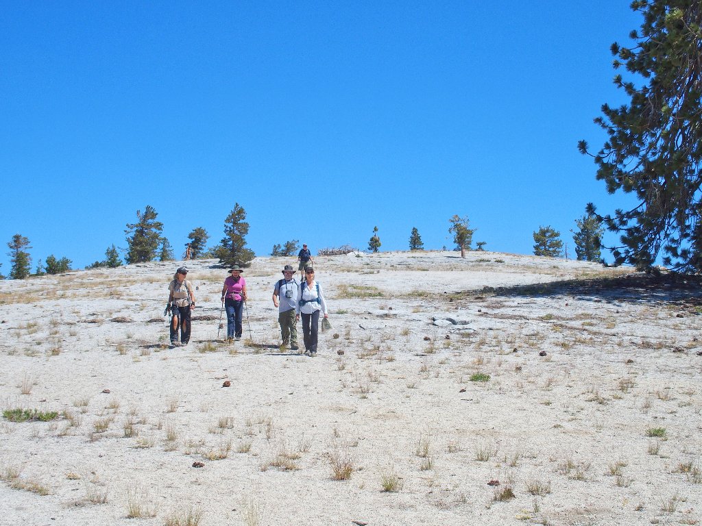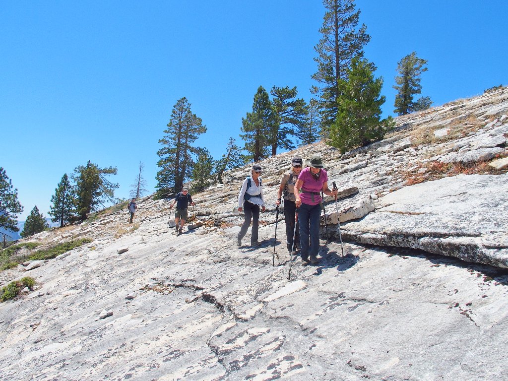 Okay! Promising my wards that the hard work is done, we stroll off the dome back toward our previous route. In fact, it is a relatively easy downhill returning to familiar ground.