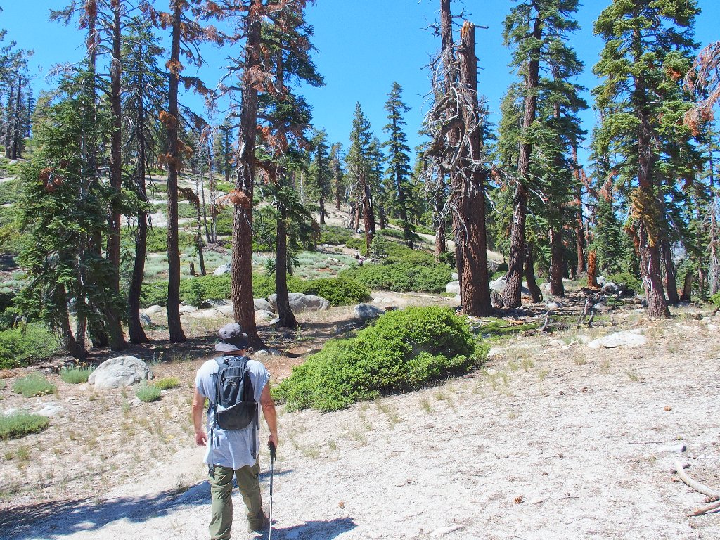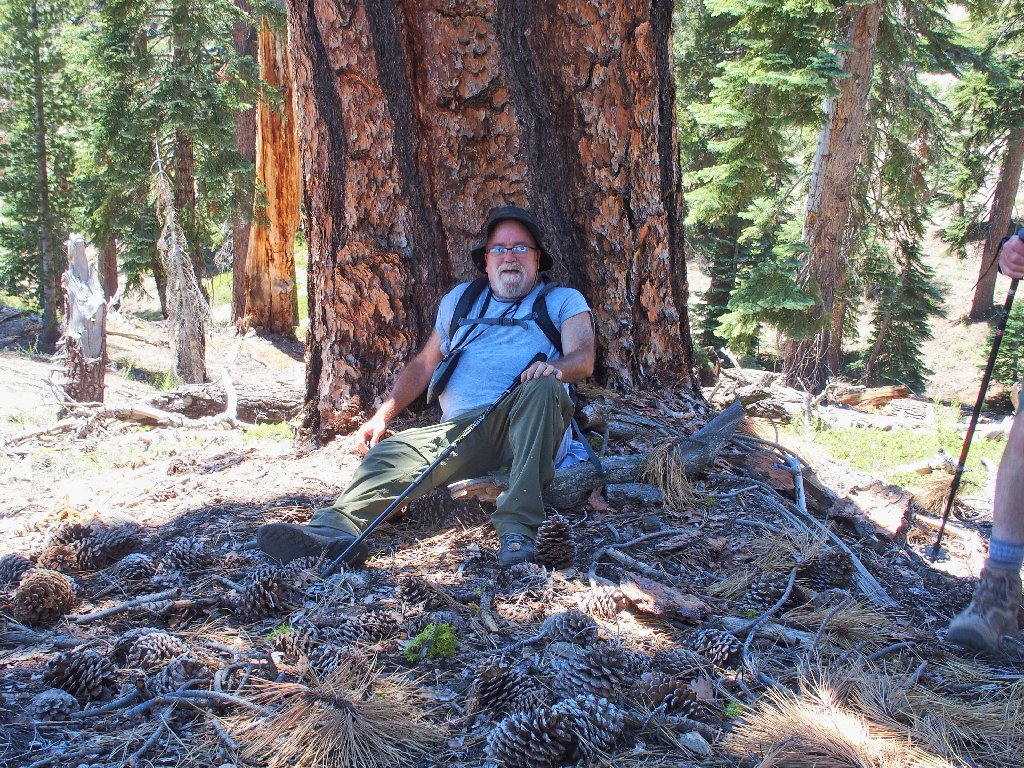 Dave has leg problems today that are slowing him down significantly. He stops here under a tree, telling us to go ahead, planning to await our return. This is not good, for he will miss out on so much.