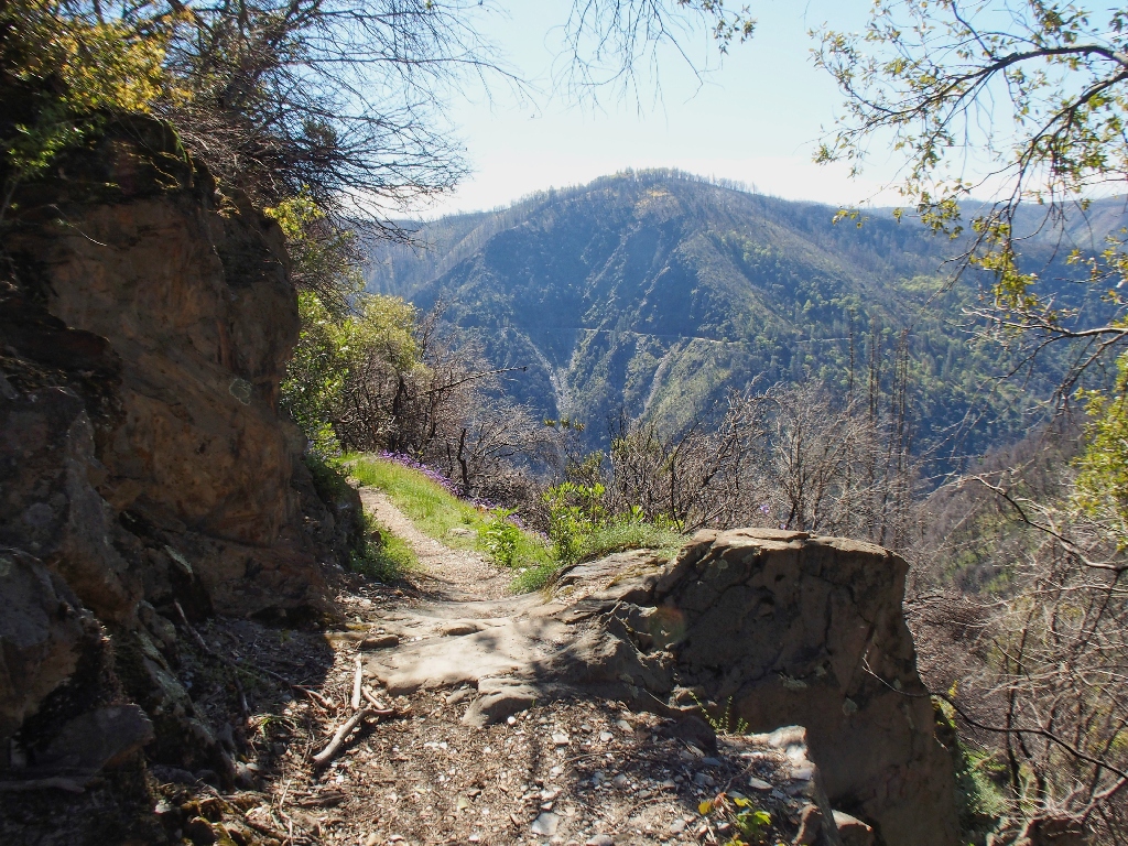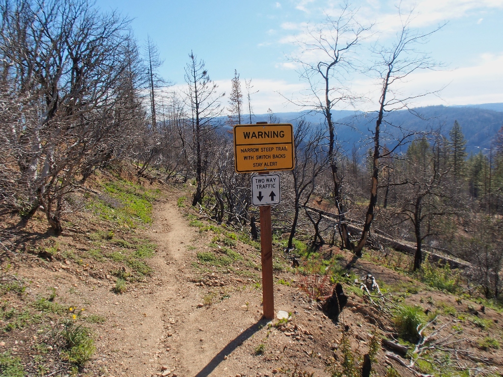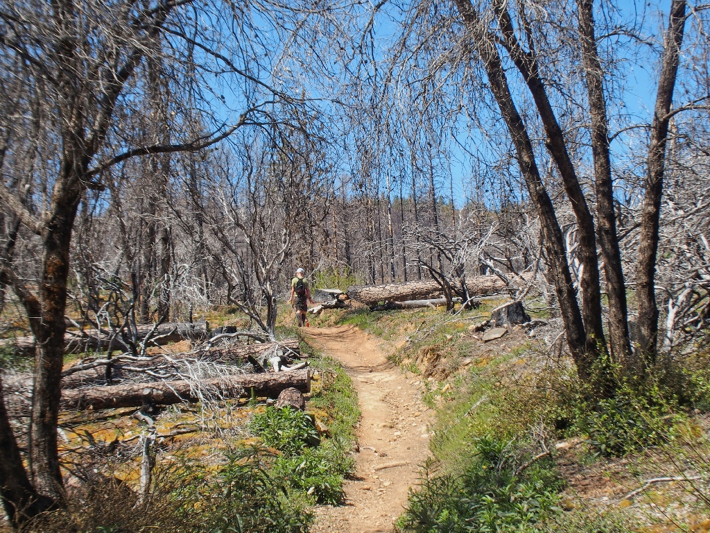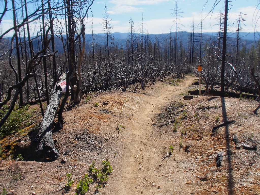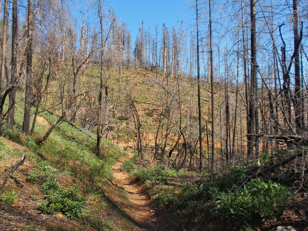 September 2022: This entire trail burned; some of the trees survivied.