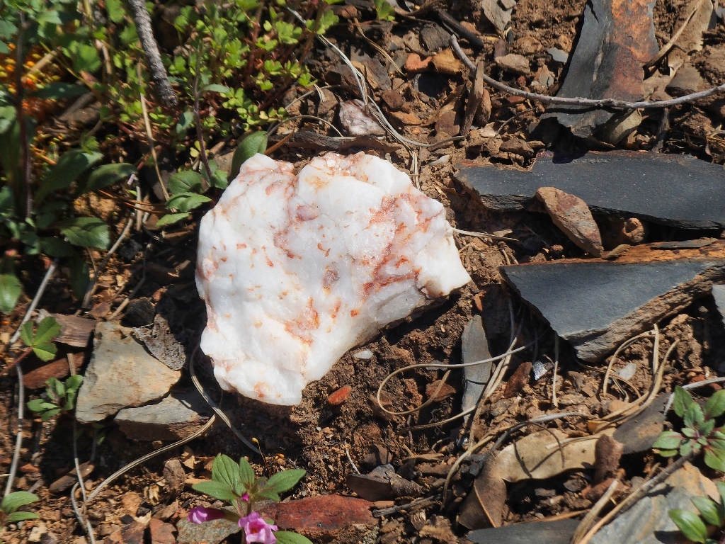 Quartz is lying about everywhere; that's where the gold is found
