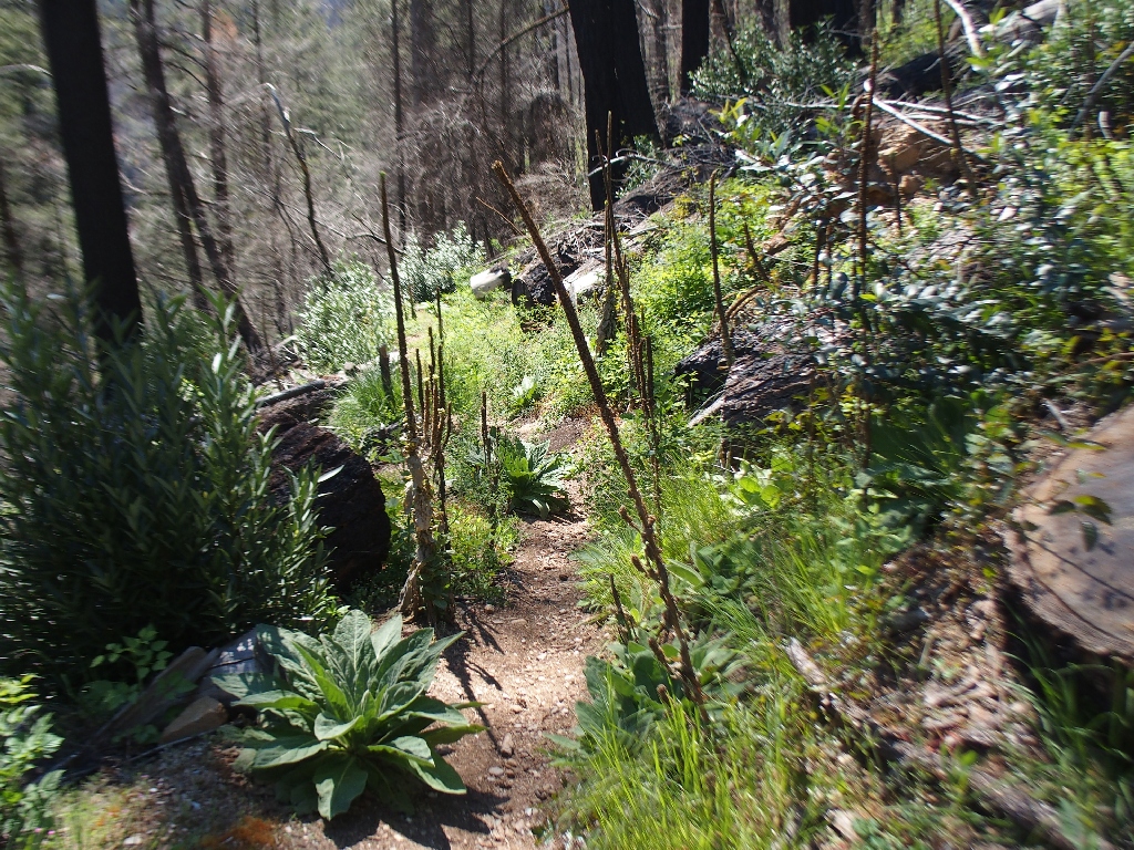 Although this route is relatively un-scenic and almost boring at times, it is trying its best to recover from the fire; and to that end, the amazing variety of flowers is the most I have encountered in a burned area.