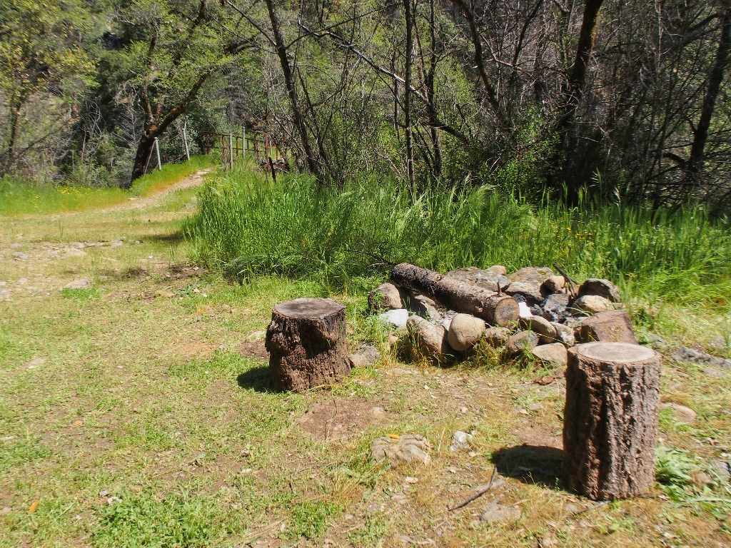 I search briefly for an access-point to streamside, but all options are rocky and difficult; so I settle for a convenient log chair at the nearby campsite.