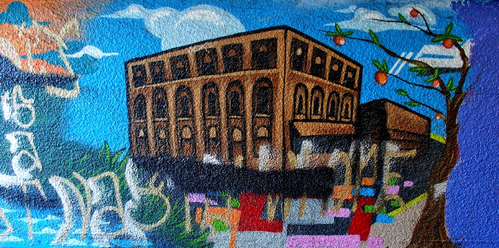 A single long image in the corner of the downtown area